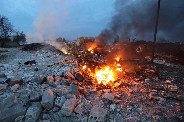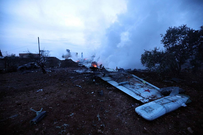 2月3日,在叙利亚西北部伊德利卜省,被击落的俄军苏-25战机残骸冒起浓烟。俄罗斯一架苏-25战机3日在叙利亚西北部伊德利卜省执行打击极端分子任务时被便携式防空导弹击落,该战机飞行员成功弹射跳伞,并向俄军方报告跳伞位置在极端组织“征服阵线”控制区上空。随后,该飞行员在与极端分子交火中丧生。新华社/法新