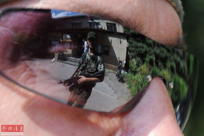 7月15日,乌克兰顿涅茨克附近Petrovsky,民间武装分子在附近巡逻。