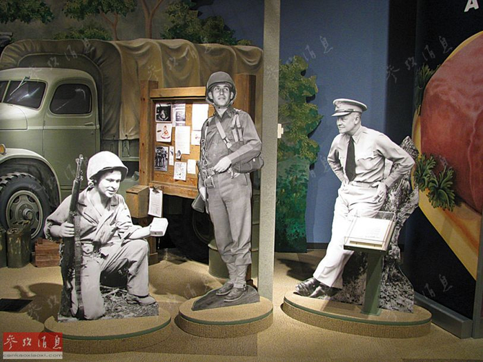 纪念二战的博物馆,艾森豪威尔和拿着午餐肉的士兵。