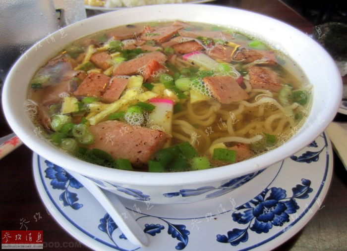 午餐肉搭配面食。