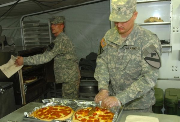 资料图:美军享用披萨大餐。