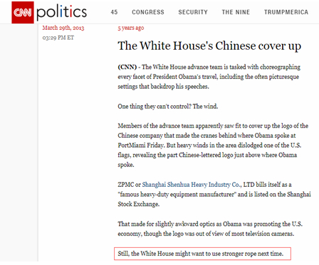 美国有线电视新闻网(CNN)对这一“插曲”全过程进行了报道,报道介绍了上海振华重工的基本情况,并调侃白宫工作人员下次挂国旗时“换条更结实的绳子”。