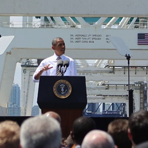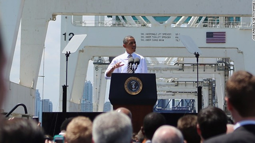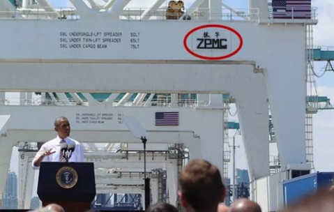 奥巴马在美国海港码头大谈“美国”制造,身后重型机械却都是“中国制造”