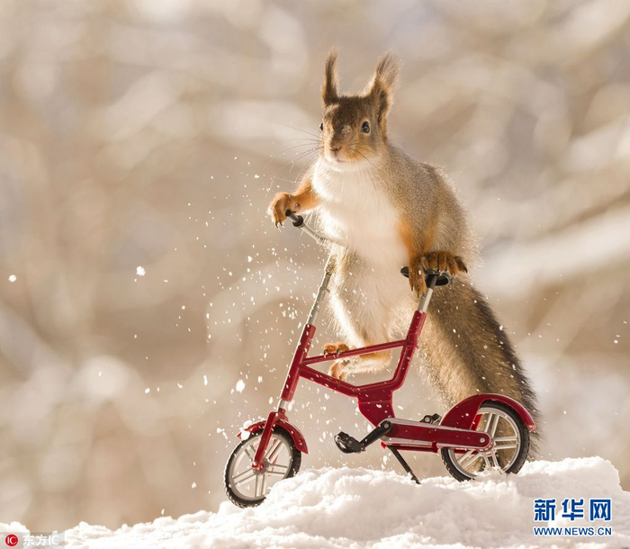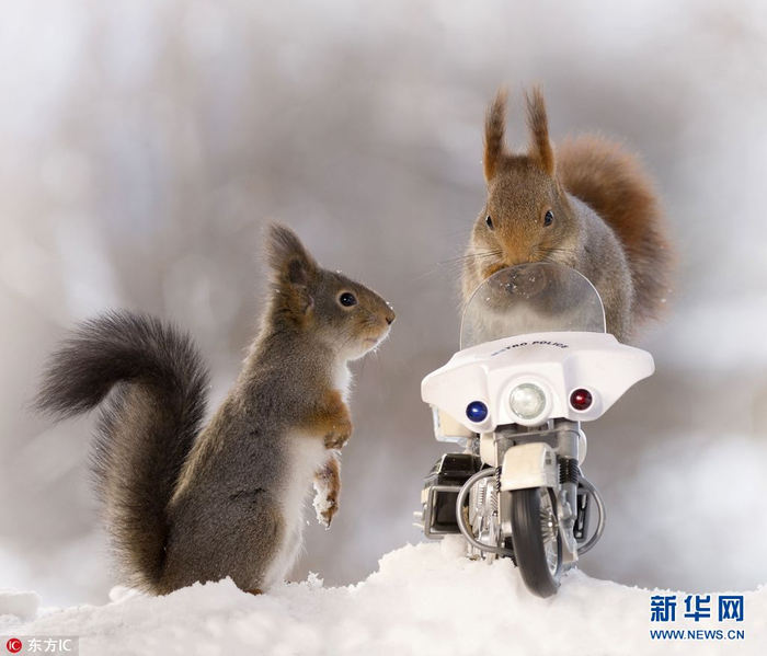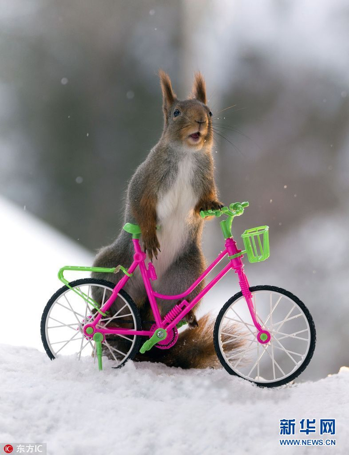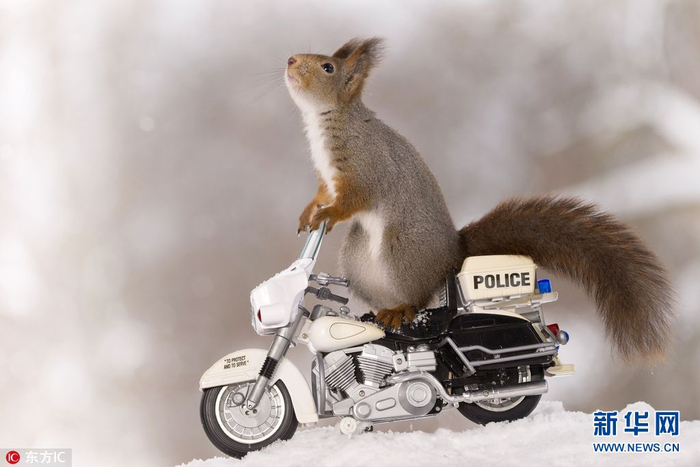 2018年3月6日报道(具体拍摄时间不详),瑞典松鼠摄影专业户Geert Weggen又出新作,这次他的主题是骑车的小松鼠。Geert Weggen在自家的户外工作室放置了几个迷你自行车和摩托车,然后在车子上方的小桶里放上葵花籽引诱小松鼠,拍摄下这些照片。(图片来源:东方IC)