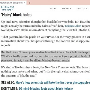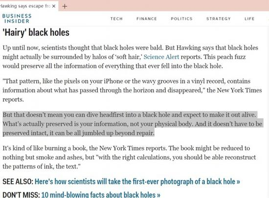 [传闻1]霍金发布新理论:人类掉进黑洞可逃至另一宇宙。