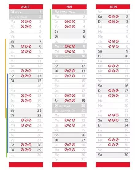 而根据法国国家铁路公司发布的罢工日历,铁路公司员工将从4月开始,持续罢工到6月,每五天罢工两天,上班三天。