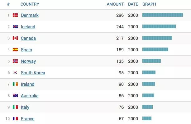根据统计,比较过去100年来每个国家的罢工天数,法国位居前十。