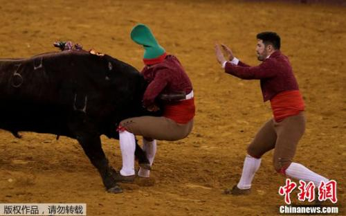中新网4月11日电 葡萄牙首都里斯本的斗牛场日前上演了精彩刺激的斗牛表演,不同于西班牙斗牛的血腥激烈,葡式斗牛显得更加文明。在其中一场比赛中,就看到一位斗牛士赤手空拳上阵,拼着膂力与公牛展开大比武,场面同样扣人心弦。