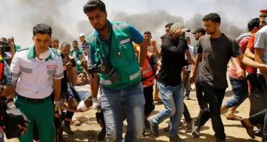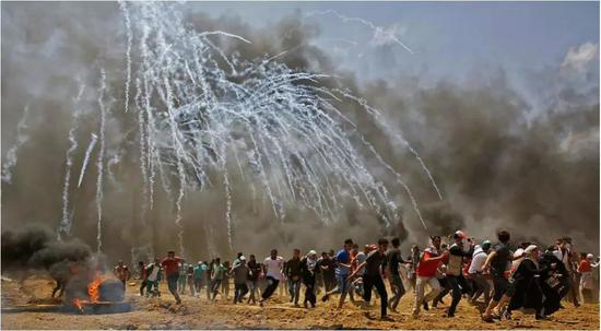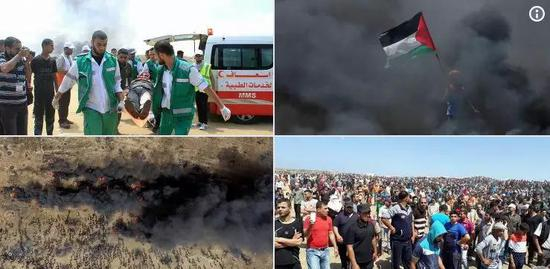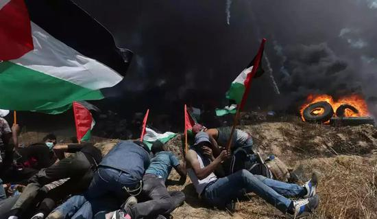 可就在以色列人为特朗普“神圣”的决定欢呼时,在巴勒斯坦与以色列交界的加沙边境,以色列军队却用枪支坦克“血洗”着抗议美国和以色列这一行为的巴勒斯坦人……