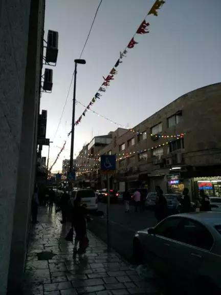 东耶路撒冷巴勒斯坦人社区萨拉丁大街上耶路撒冷。市政当局挂上了庆祝的彩灯——而第二天就是巴勒斯坦浩劫日。这大概是以色列对耶路撒冷全权管理明证了。