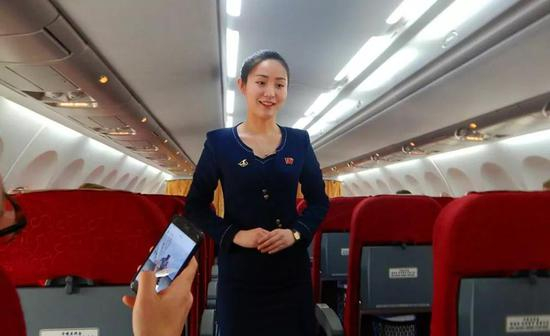 在从北京飞往元山1个多小时的飞行途中,机上小屏幕播放了歌颂朝鲜劳动党和领袖,歌唱美好生活等歌曲。