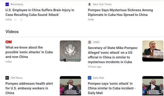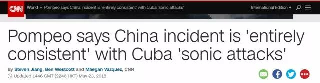 于是,CNN在标题中干脆将他的发言概括为了“蓬佩奥说中国事件与古巴的‘声波袭击’‘完全一致’”。