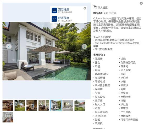 最特别的是,这是新加坡唯一提供独立平方式庄园住宿的酒店,有5间现代风格庄园和2间殖民风格庄园,面积分别为398平方米和436平方米。