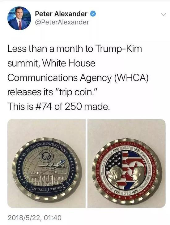 早在5月下旬,双方还没商定会谈细节的时候,美国白宫通讯局就曾抢先发行了250枚特金会的纪念币。