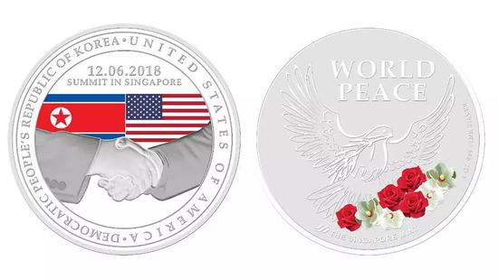 据新加坡亚洲新闻网报道,新加坡造币厂的声明表示,这款名为“世界和平”的纪念章,不仅是为了纪念美朝首脑峰会这一世界和平的重要举动,也象征着新加坡这个中立的东道主,在东西方之间经济和安全门户的作用。