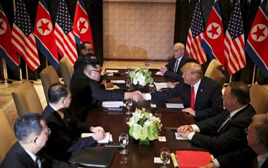 金正恩则对特朗普说:“我过来并不容易,历史一直成为我们之间的枷锁,偏见成了我们前进道路上的绊脚石。但我们还是排除万难来到了这里。”