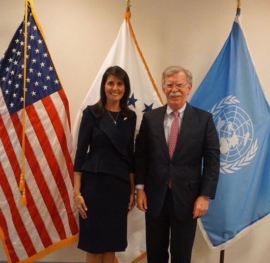不过,这次退出联合国人权理事会的决定可能并不是特朗普一意孤行。半岛电视台分析,总统背后有两位关键人物“助攻”——美国驻联合国大使妮基·黑莉和国家安全顾问约翰·博尔顿。