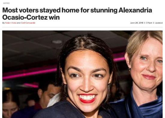 他们的观点并不仅仅只是出于“政治立场”。一个尴尬的数据就显示,在亚历珊德拉战胜克劳利的这次民主党的初选中,真正来投票的民主党注册选民只有总人数的13%。。。。。。
