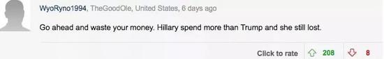 “去竞选然后大把的浪费钱吧。希拉里比特朗普花的还要多,但还是没用”