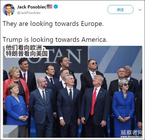 昨天,正在比利时布鲁塞尔参加北约峰会的特朗普,又与“盟友”们留下了一张谜一样的照片。
