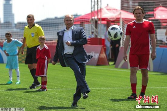 资料图:当地时间6月28日,俄罗斯总统普京同国际足联主席因凡蒂诺造访了位于莫斯科红场的2018世界杯主题公园。