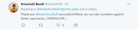 网友@SrivamshiB:感谢足协!现在我们可以和更好的球队交手了。