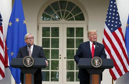 重压之下,发动全球贸易战的特朗普选择了适度放低姿态。欧盟委员会主席容克当地时间25日到访美国与特朗普会面,双方达成了避免跨大西洋贸易战的协议,缓解了对欧洲主要是从德国进口的汽车加征关税引发的紧张局势。特朗普还说,欧盟同意扩大对美国液化天然气和大豆的进口。