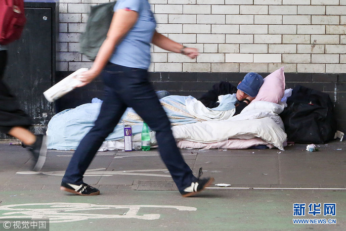 当地时间2018年8月13日,英国伦敦,街头的流浪汉。英国政府计划投入1亿英镑,在未来10年内消除英国国内的流浪汉现象。据英国《独立报》12日报道,该计划将采取三管齐下的方法,包括预防,干预和恢复。目前,英国国内流浪汉数量已连续七年增加。 (图片来源:视觉中国)