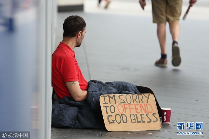 当地时间2018年8月13日,英国伦敦,英国政府计划投入1亿英镑,在未来10年内消除英国国内的流浪汉现象。据英国《独立报》12日报道,该计划将采取三管齐下的方法,包括预防,干预和恢复。目前,英国国内流浪汉数量已连续七年增加。(图片来源:视觉中国)