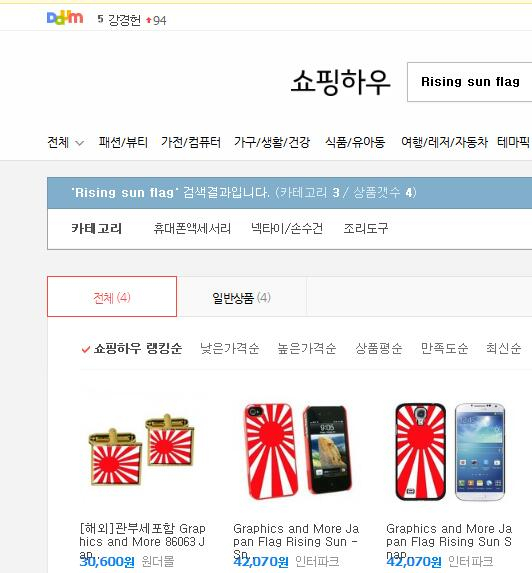根据徐敬德的说法,在韩国网购商城的搜索框中输入“Rising sun flag”,可以发现coupang、interpark、coocha、쇼핑하우等平台都在销售带有战犯旗图案的手机壳、笔记本等商品。不过,环球网记者在上述平台搜索“Rising sun flag”后发现,coupang和coocha显示无相关搜索结果,但在interpark和쇼핑하우仍可搜索到相关商品。