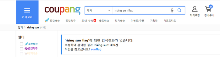 coupang网购商城搜“Rising sun flag”显示无相关搜索结果
