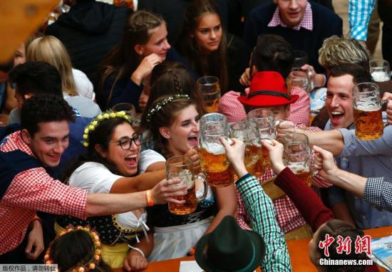 资料图:德国慕尼黑啤酒节,民众畅饮啤酒。