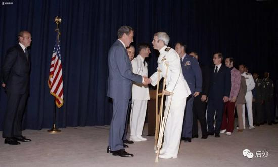 麦凯恩挨了顿打,立马招供他能知道的所有军事秘密,加上他老爸的显赫身份,越南将他当成特殊战俘对待,武元甲都来看望过他,他在当战俘时期还可以泡妞(越南护士),他所谓的“坚贞不屈”历史,国内网媒编得比他还感人。