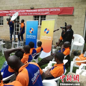 图为“万村通”在肯尼亚对当地安装维护人员进行培训。四达时代供图