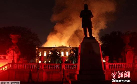中新网9月4日电 据“中央社”报道,位于里约的巴西国家博物馆2日晚失火,消防人员经过6个多小时全力抢救后将火势扑灭。民防局初步勘查后表示,建筑物无倒塌危险,但建议暂时关闭;巴西政府则被指失职。