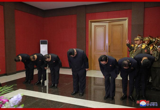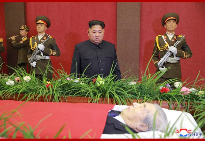 报道称,故人灵柩前摆放着金正恩送来的花圈。金正恩怀着失去宝贵的革命同志的悲痛,肃立默哀,其还会见故人家属,表示深切哀悼和诚挚慰问。