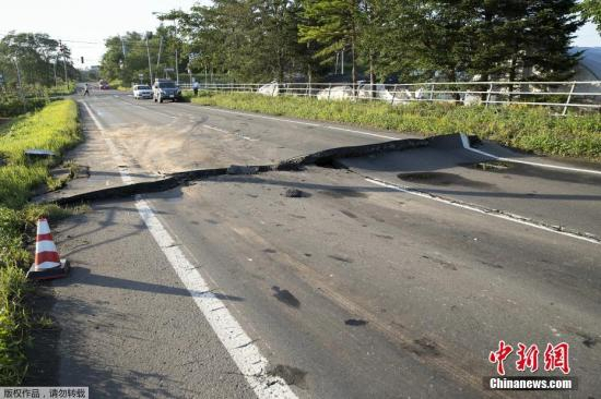 当地时间9月6日凌晨,日本北海道发生里氏6.7级(日本标准6强)地震。强烈地震导致震区周边的公路受到严重损毁。