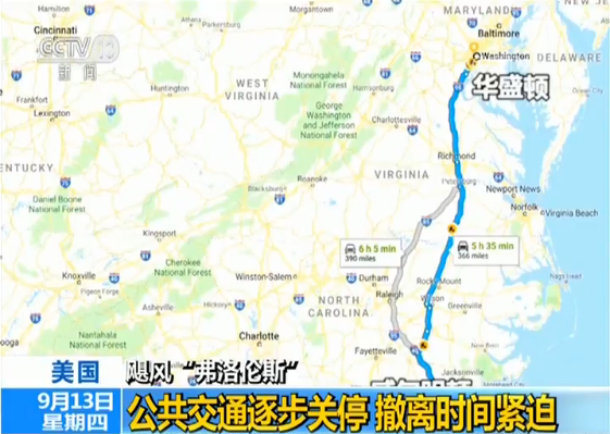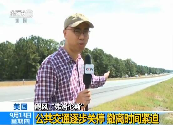 央视记者 肖贺佳:这里是北卡罗来纳州威尔明顿附近的40号公路,我们可以看到现在往北面行进的这些车辆要比往南走的车辆要多很多,因为在我身后往南走大概半小时车程就是威尔明顿附近北卡罗莱纳州沿海的区域,这片区域目前都是强制撤离区。往北撤离的这些车辆主要是通过这条40号公路,向西北行进连接到95号洲际公路来完成他们撤离的行程。