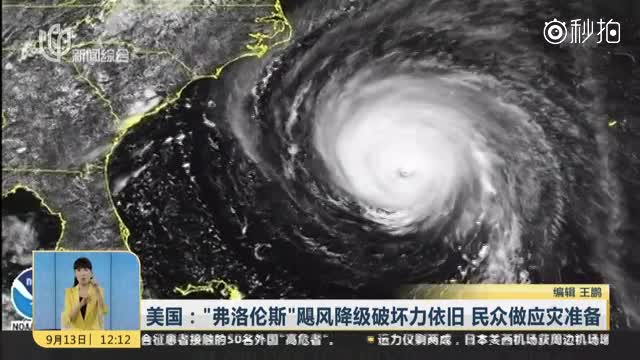 13号,飓风“弗洛伦斯”继续向美国东海岸逼近,美国联邦紧急措施署当天宣布,飓风可能在当地时间14号下午到15号早上之间登陆。与之前相比,“弗洛伦斯”的中心持续最大风速有所下降,已经减弱为二级飓风。但美国联邦紧急措施署官员当天仍然警告民众,不要因为“弗洛伦斯”的级别有所降低,就放松警惕。
