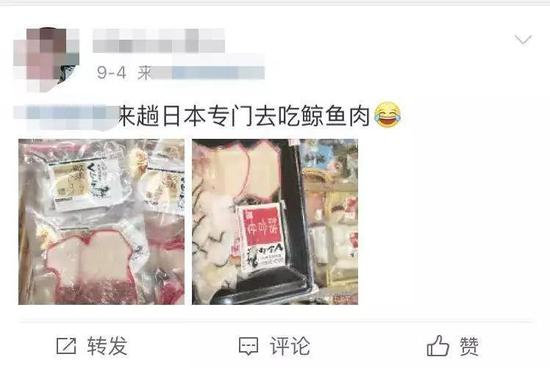 ▲许多网友在微博表示,在日本可以轻易吃到(买到)鲸肉