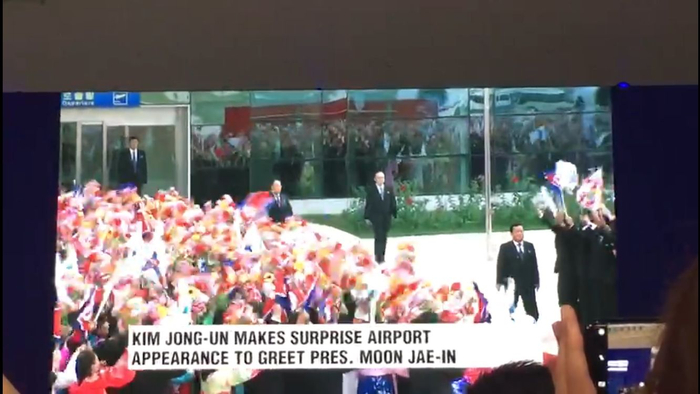 朝鲜民众首次举半岛旗欢迎文在寅 金与正现场指挥