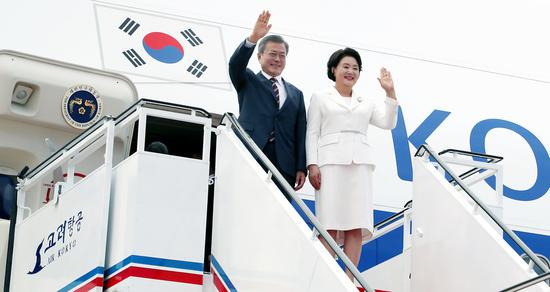 海外网9月18日电 今天(18日)上午,韩国总统文在寅夫妇搭乘的专机抵达平壤顺安国际机场,朝鲜最高领导人金正恩及夫人李雪主亲自迎接。青瓦台新闻发言人金宜谦下午对外发布了文在寅在专机内的公开发言。文在寅在俯瞰朝鲜半岛时称,这真的不像是分裂的土地,这是我们共同的江山。
