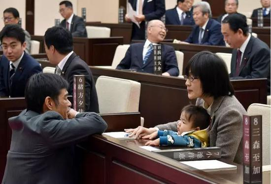 据NHK报道,去年11月,日本熊本市女议员绪方夕佳将7个月大的儿子带到议场开会,当场被其他议员“请出”。