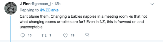 有网友评论,在联合国大会的会议厅里给宝宝换尿布,这即使在新西兰国内也是让人难以接受的。