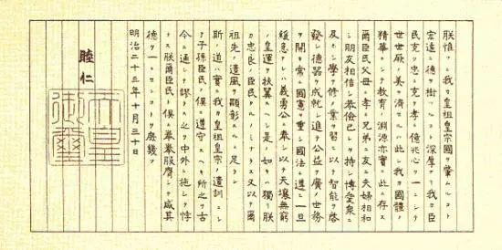 《教育敕语》是日本明治天皇于1890年颁布的教育文件,旨在纠正当时日本教育偏重欧美器物的介绍而忽视道德教育。不少人批判其内容过度侧重国家主义。
