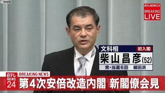 10月2日下午,日本首相安倍晋三又双叒叕进行了内阁改组,自民党议员柴山昌彦成为安倍内阁第四次改组后的文部科学大臣。