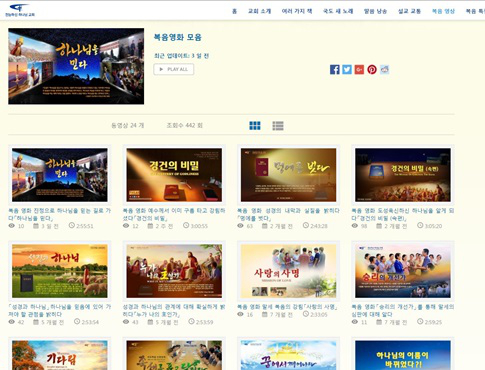 “全能神”2017年4月28日在韩国youtobe网站上传了名为《摆脱桎梏》的影片,此影片时长2小时43分。除此之外还制作并上传了很多教会人士所感兴趣的影片,如《如何迎接主的再临?》《主再临时将如何出现?》《是否存在〈圣经〉以外的神的话语?》《信主就是信〈圣经〉吗?》《教会中的牧师和长老真的是主指派的吗?》《顺从牧师和长老就是顺从上帝吗?》等。这些影片分为六个主题,每部片长约30-40分钟,考虑到长篇电影会对观影者造成负担,制作的大多为短片。