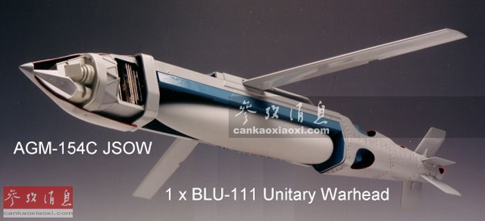 AGM-154C最大射程130千米,可搭载450千克级钻地弹头,打击精度可控制在5米内,十分适合用于打击敌方纵深高价值目标。图为AGM-154C剖面图。