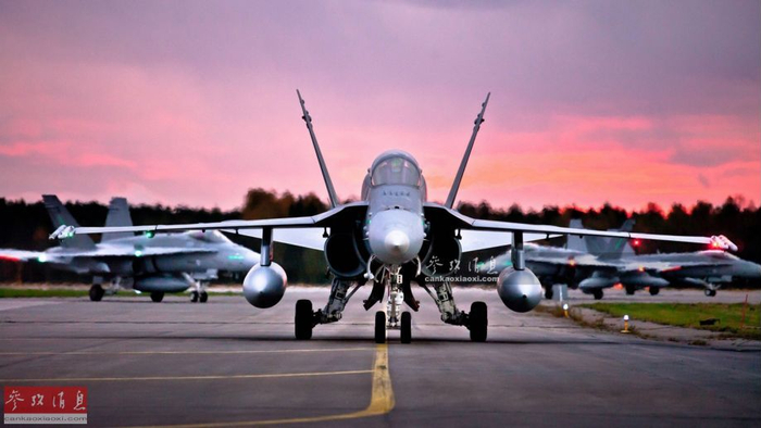 尽管芬兰在冷战时期表面上宣布中立,但实际还是较偏向于西方阵营。1992年5月,芬兰政府宣布从美国采购64架F/A-18C/D“大黄蜂”战机用于替换老旧的一线战机。图为芬兰空军装备的FA-18C机群。