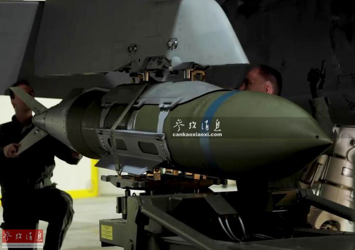 其中包括了3种美空军现役的主力弹药,第一种为图中芬兰地勤人员为F-18挂装的900千克级别GBU-31 JDAM卫星制导炸弹。其首次投入实战是在1999年的科索沃战争期间。GBU-31在加装增程组件后,最大射程达80千米,打击精度达13米内。